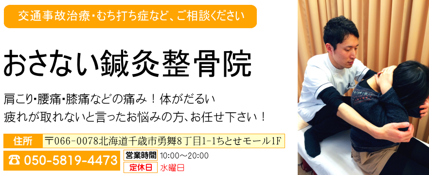千歳市の交通事故治療、むち打ち症治療の鍼灸整骨院 おさない鍼灸整骨院